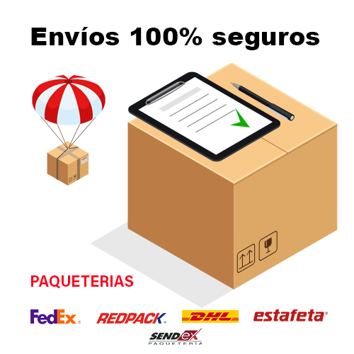 Puedes estar tranquilo, trabajamos con diferentes paqueterías nacionales que nos dan la mayor cobertura. DHL, FedEx, Estafeta, Redpack, Sendex. Tu envío está seguro, checa nuestras reseñas!